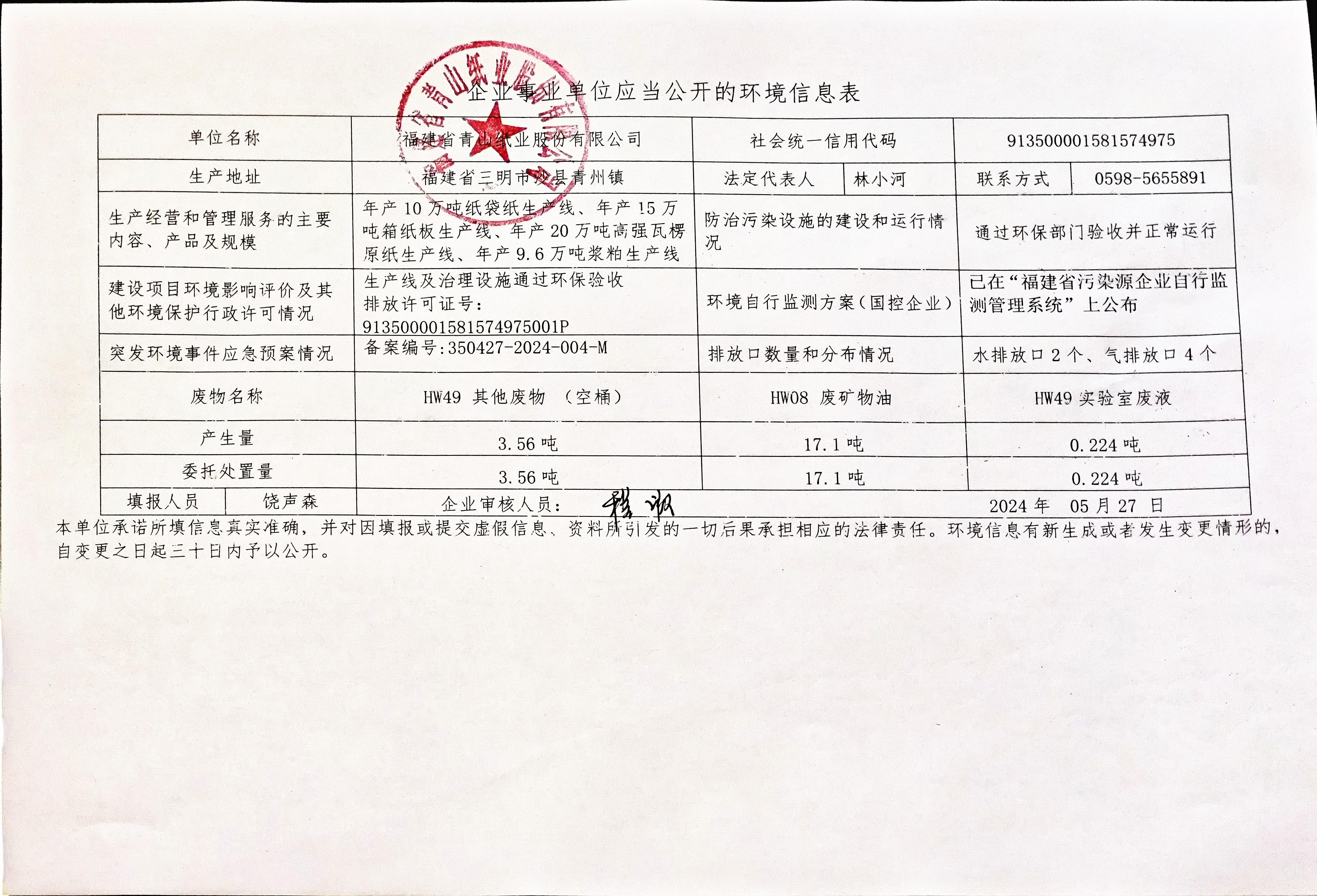 本單位承諾所填信息真實準確,并對因填報或提交虛假信息、資料所引發(fā)的一切后果承擔(dān)相應(yīng)的法律責(zé)任。環(huán)境信息有新生成或者發(fā)生變更情形的,自變更之日起三十日內(nèi)予以公開。